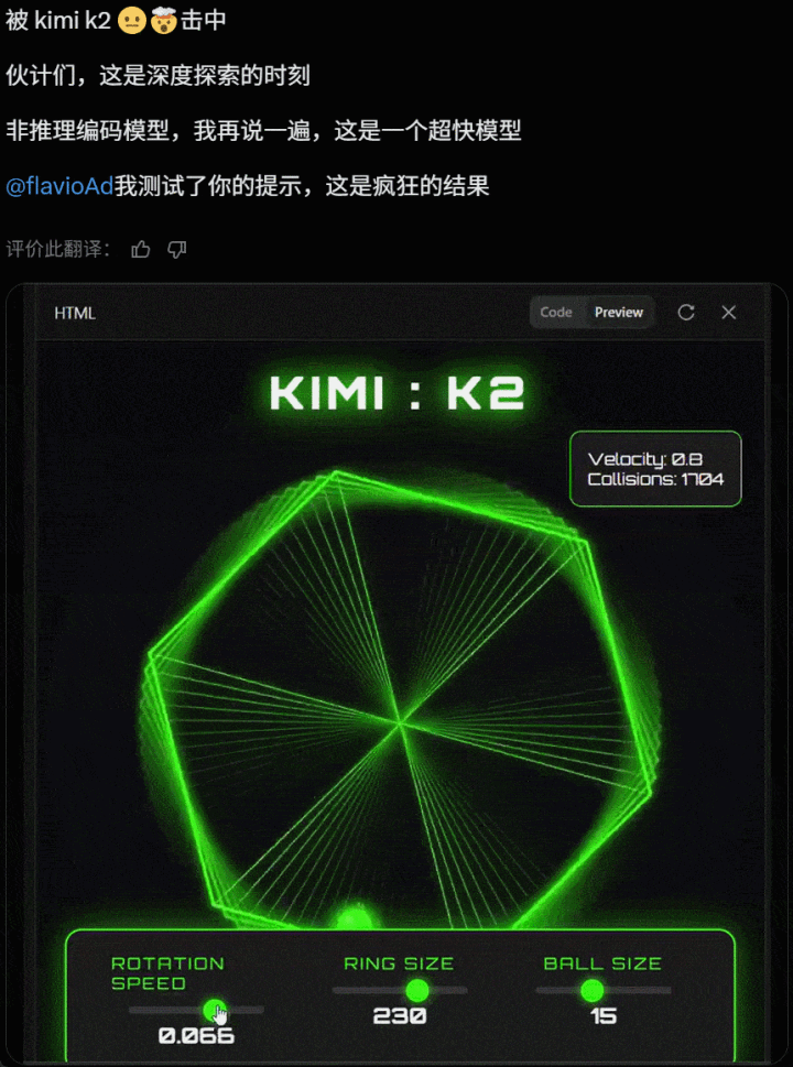 值得关注的是,就在昨天 Grok 4 发布后,人们第一时间测试发现其代码能力飘忽不定,但看起来 Kimi K2 的代码能力经住了初步检验。